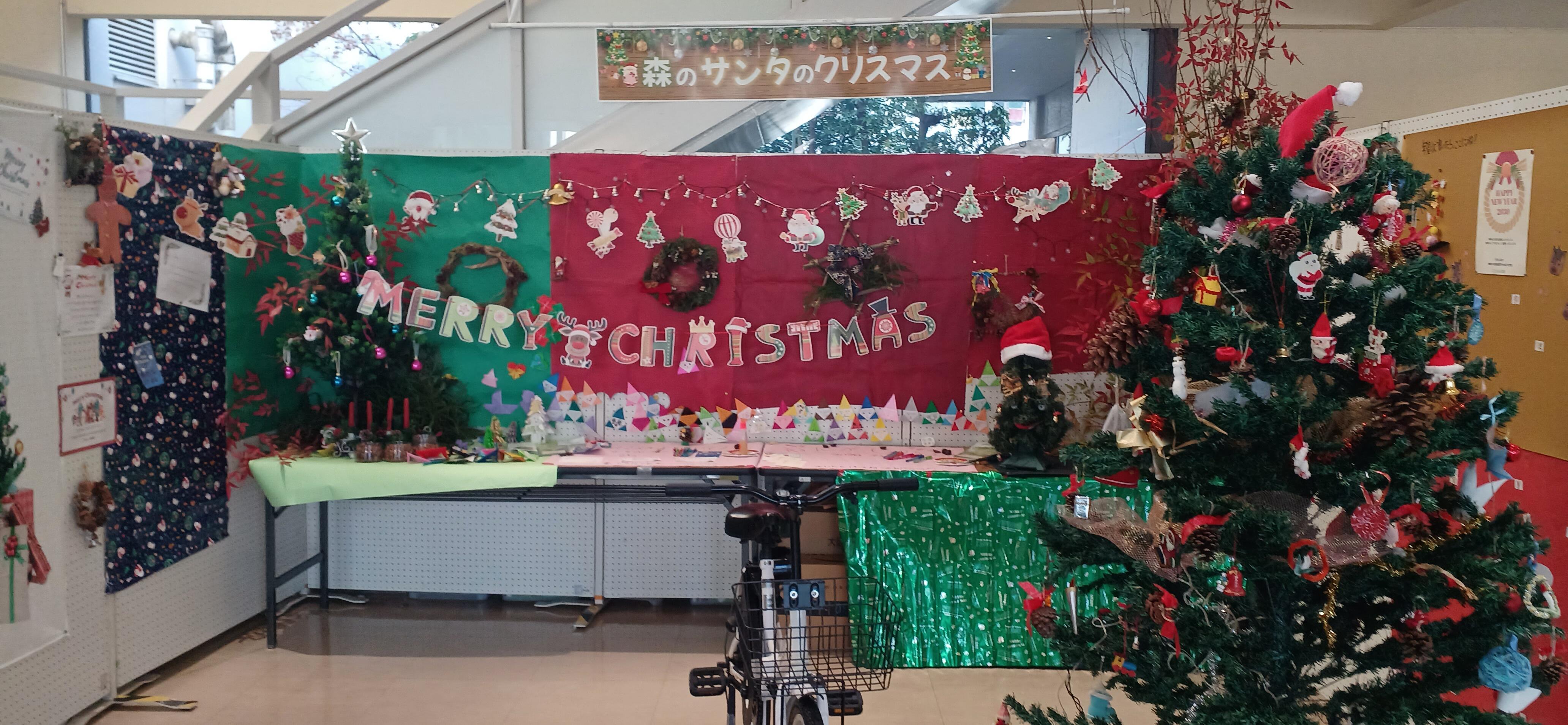 パネル展示とクリスマスツリーの設置をしています。ぜひ写真を撮るなどしてお楽しみください。