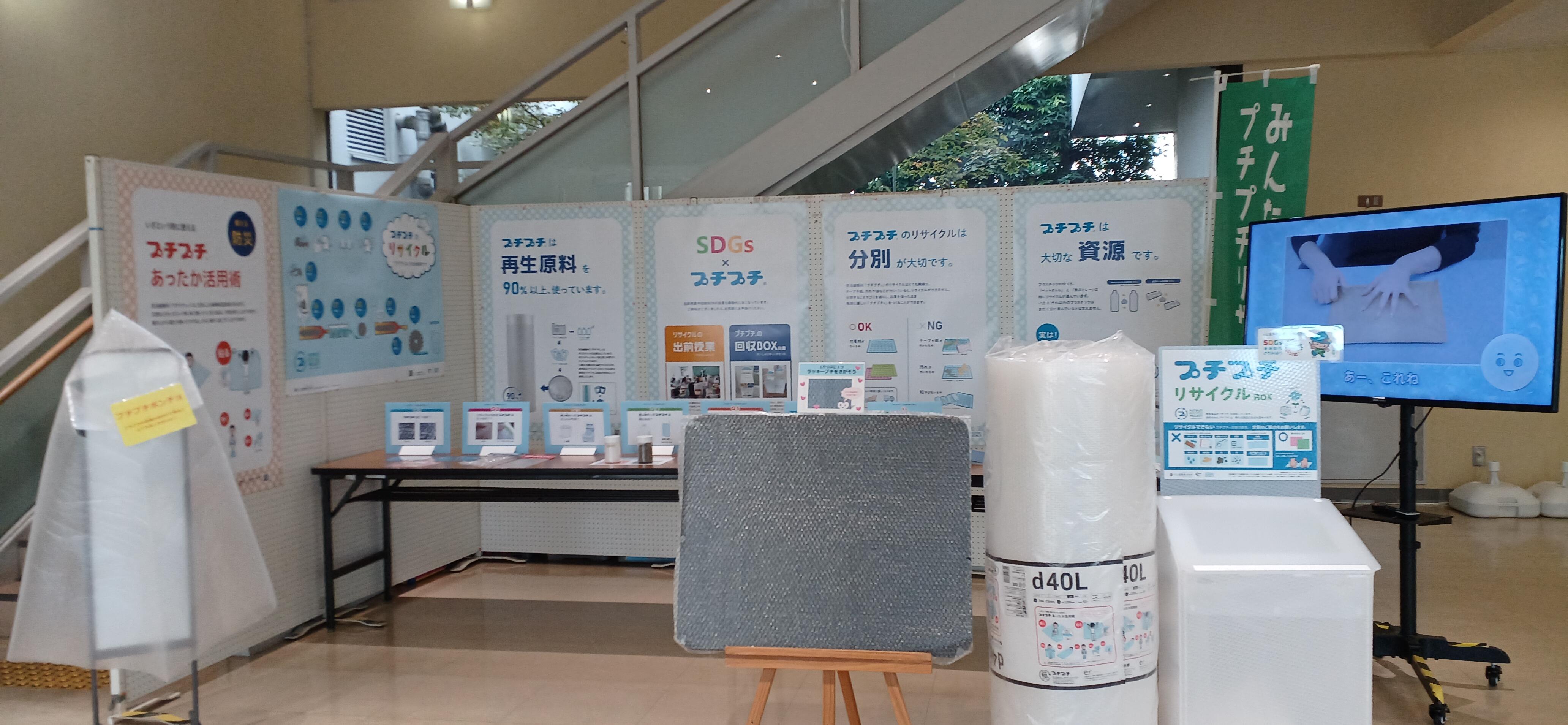 プチプチⓇのリサイクルの仕組みをパネルやクイズで紹介しています。