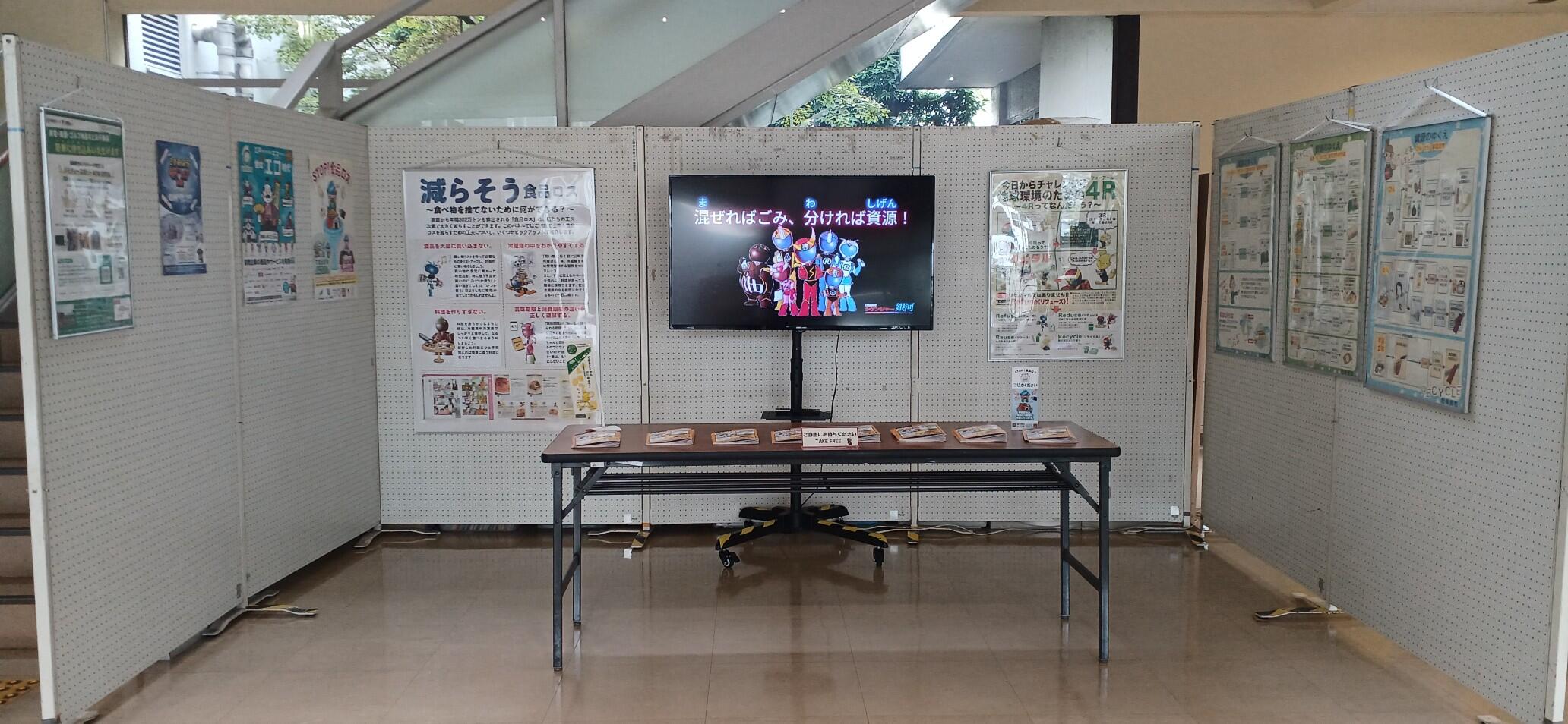 パネルや映像で食品ロスやリサイクルのことを展示しています。